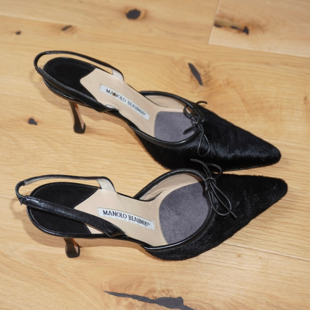 Manolo Blahnik Black Pony Hair Slingbacks