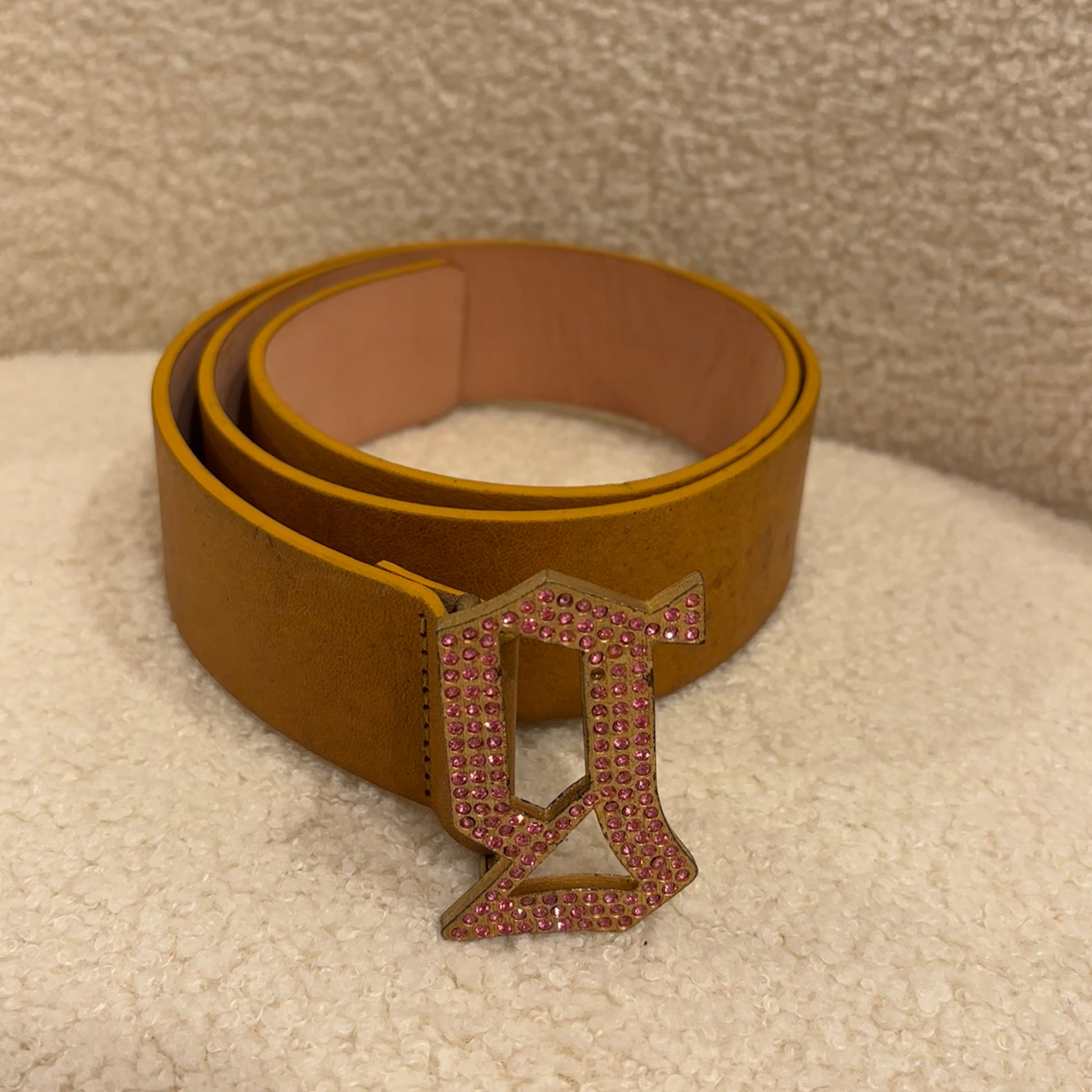 Galliano Pink Rhinestone Tan Leather Belt