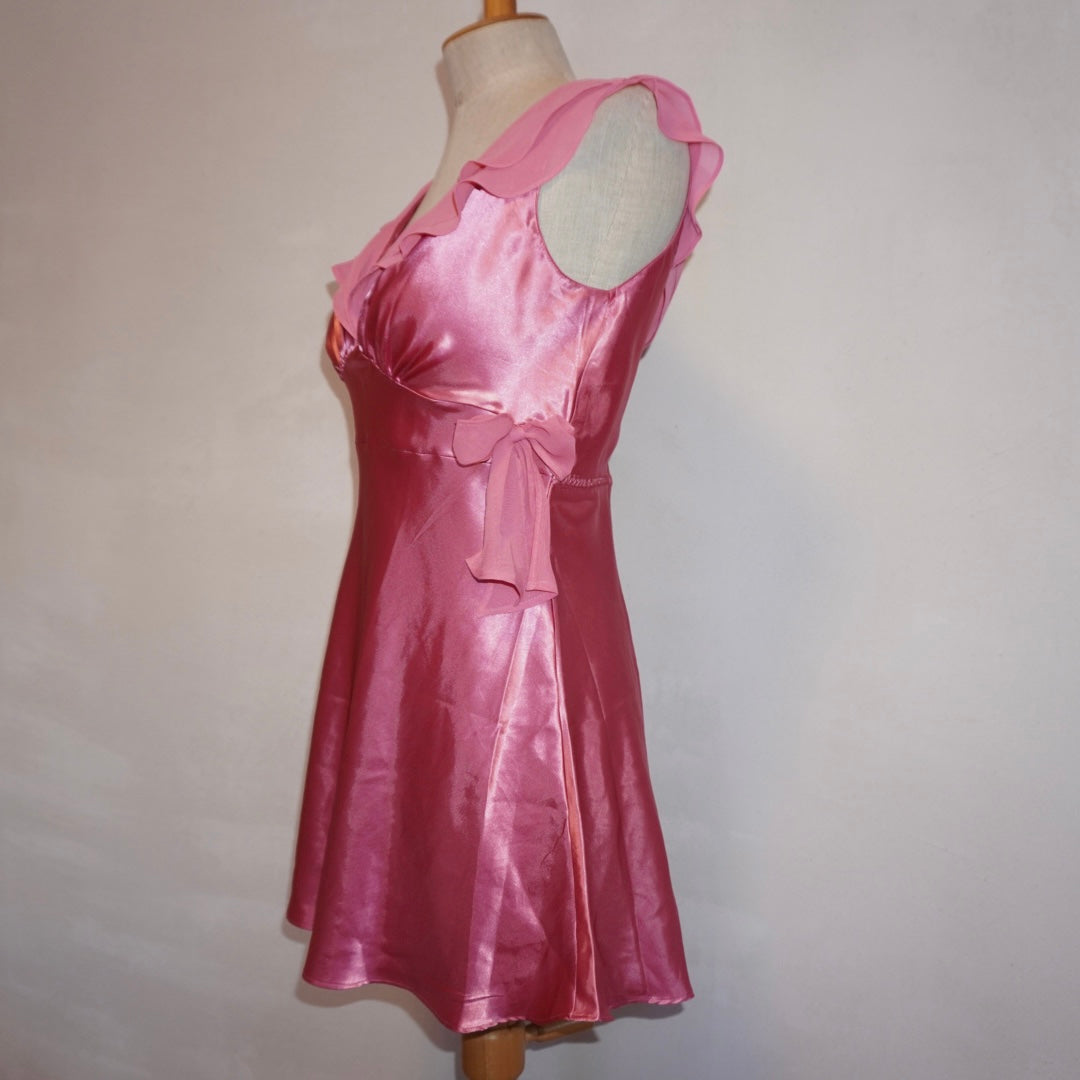 Satin ruffle slip dress